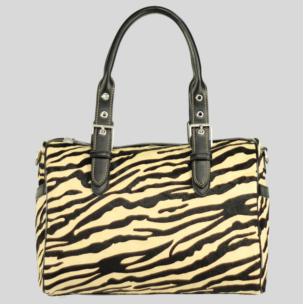 The Marie Satchel in animal printed leather, where bold style meets classic sophistication. With its structured design, this satchel is both durable and fashionable, making it perfect for everyday use or a special occasion. Featuring versatile handles and a shoulder strap, the Marie Satchel is designed to fit all your essentials while adding a distinctive flair to any ensemble. Its chic animal print and meticulous craftsmanship ensure it remains a standout accessory, effortlessly blending practicality with elegance.