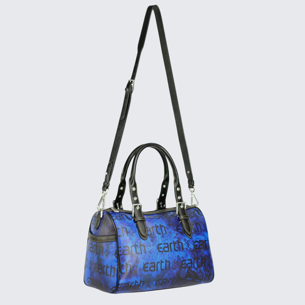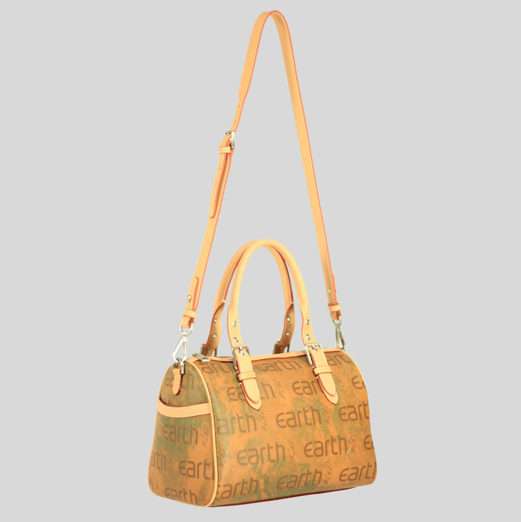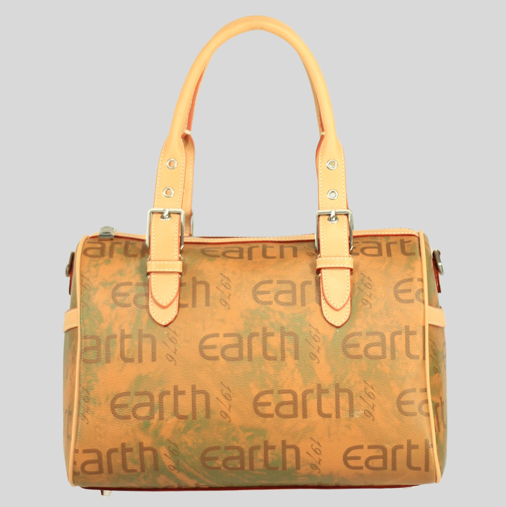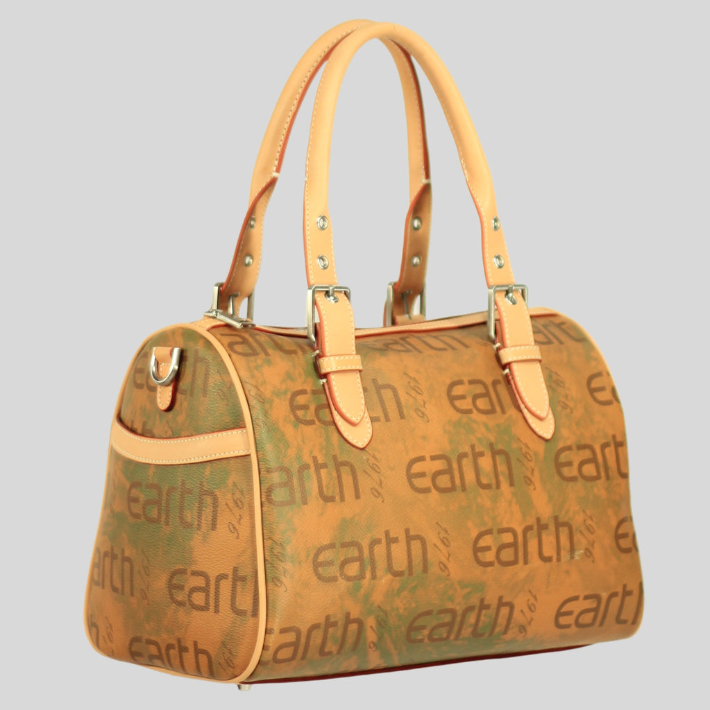The Marie Satchel in sustainable coated canvas, a perfect fusion of elegance and eco-conscious design. Featuring the iconic Earth 1976 logo, this satchel boasts a structured silhouette with versatile handles and a shoulder strap, ideal for both everyday use and special occasions. Durable and fashionable, the Marie Satchel is designed to fit all your essentials while making a sophisticated statement. Its refined craftsmanship and sustainable materials ensure it stands out as a chic, responsible choice for any outfit.