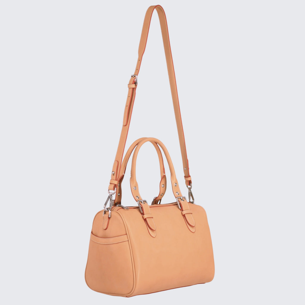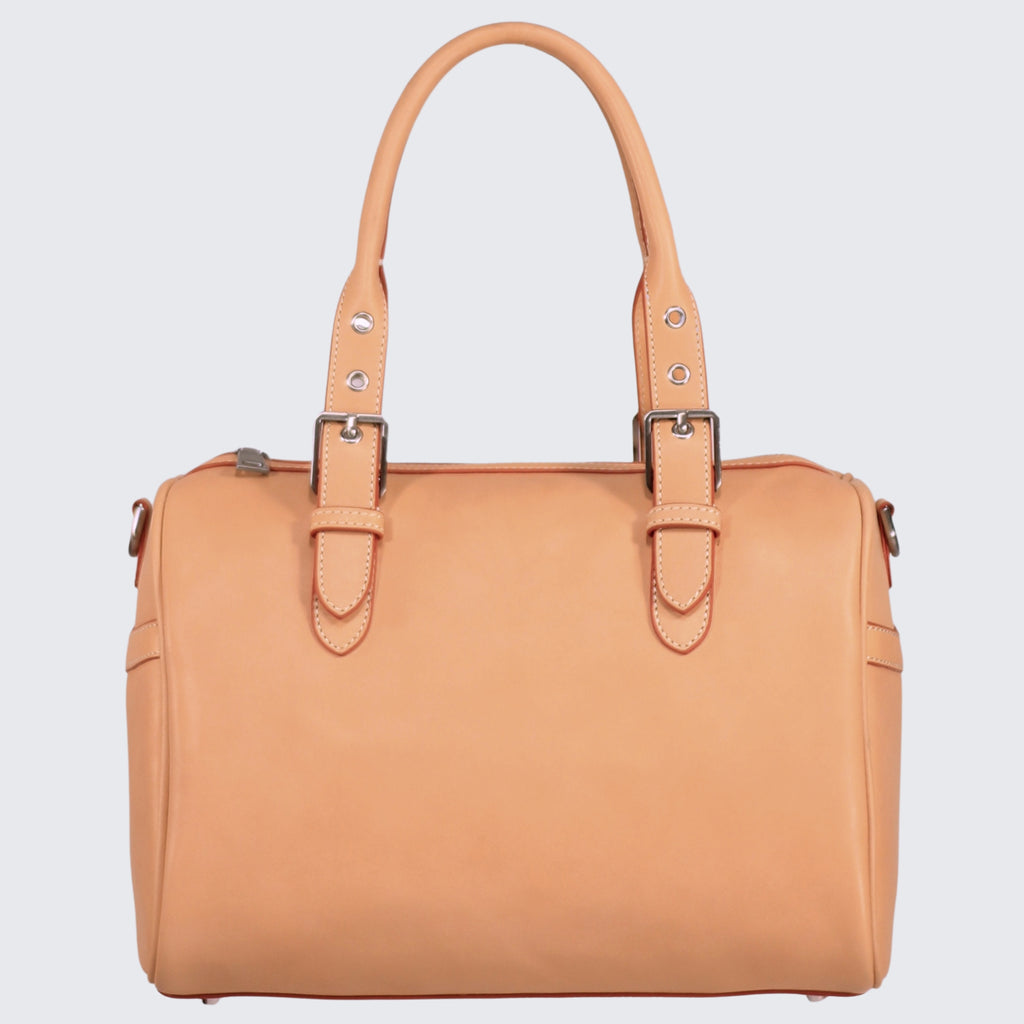 The Marie Satchel, a masterpiece in vegetable-tanned leather that embodies elegance and sophistication. Designed with a structured silhouette, this satchel features both handles and a shoulder strap, providing versatile carrying options for everyday use or special occasions. Durable and fashionable, the Marie Satchel effortlessly fits all your essentials while making a chic statement. Its impeccable craftsmanship and timeless design ensure it remains a refined choice, perfect for elevating any outfit with ease and grace