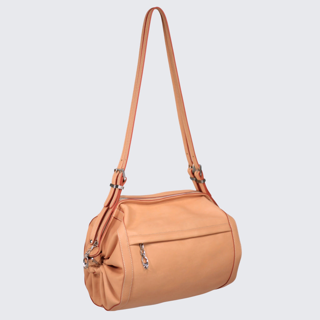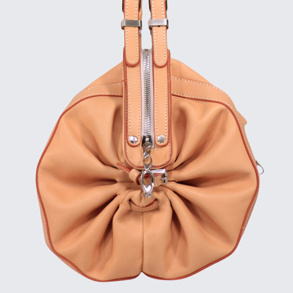 Embrace timeless elegance with the Jane Satchel, a best-seller in classic vegetable-tanned leather. Adorned with pedal-shape gathering and a graceful teardrop-shaped zipper pull, this satchel radiates a romantic Florentine appearance. Its refined design and superior craftsmanship make it the perfect embodiment of sophistication and style.